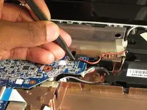Используйте лопатку, чтобы отсоединить провод динамика.