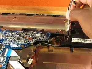 Используйте чёрную язычковую ленту, чтобы отсоединить разъём LCD.