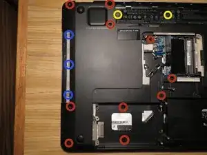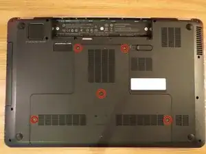 Открутите пять винтов, удерживающих нижнюю крышку для доступа к оперативной памяти, жёсткому диску и Wi‑Fi карте.