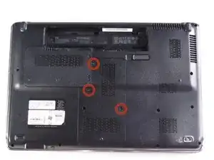 Снимите три серебристых крестовых винта 3,5 мм, которые крепят клавиатуру к корпусу.