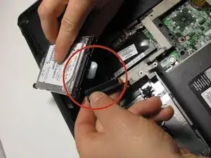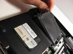 Используйте вкладку из майлара, чтобы приподнять жесткий диск, затем сдвиньте его влево, чтобы освободить из отсека.