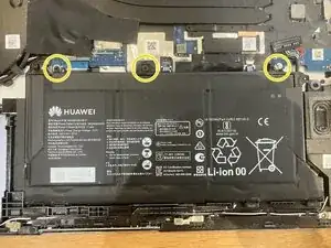 Удалите 3 винта PH00, удерживающие батарею на месте.