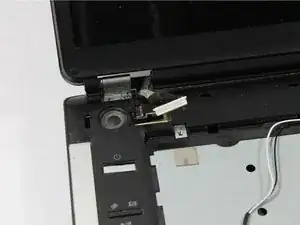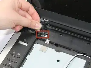 Отсоедините кабель, соединяющий ЖК-панель с материнской платой, на левой стороне ноутбука.