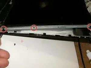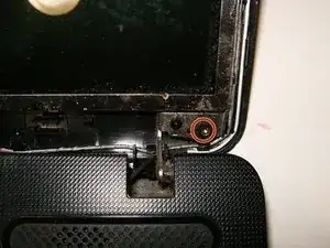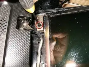 Удалите винт Philips, который соединяет рамку ЖК-дисплея с задней крышкой. Это левый винт.