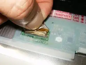 Провод дисплея закреплен на разъеме с помощью прозрачного клея. Удалите его сначала.