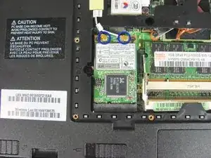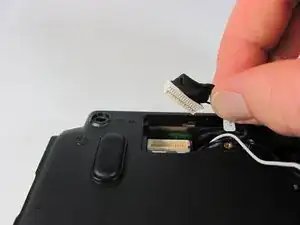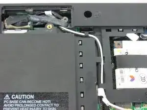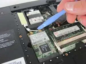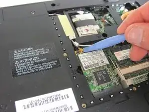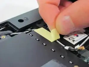 С помощью пластикового съемника отсоедините два кабеля, подключенные к беспроводной плате.