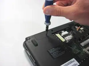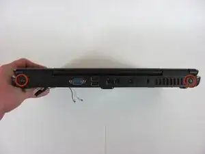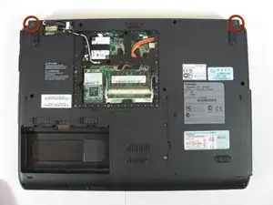 Удалите оставшиеся два винта на нижней стороне ноутбука, удерживающие ЖК-дисплей.