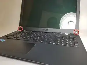 Переверните ноутбук так, чтобы наклейки модели были направлены вверх, а задняя часть ноутбука — к вам.