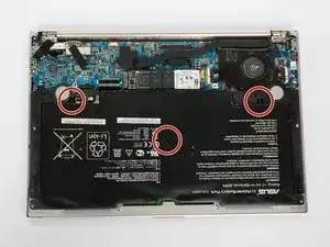 Используя крестовую отвертку Phillips #00, открутите винты по центру и в двух углах аккумулятора.