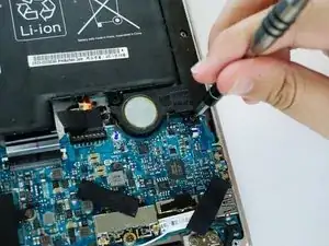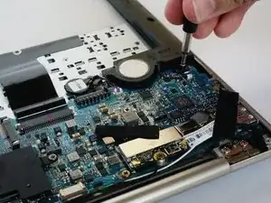 Отвинтите винт, соединяющий динамик с материнской платой, используя отвертку.