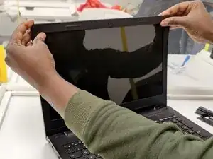 Двумя руками освободите защелки по периметру окантовки и снимите ее с ноутбука.