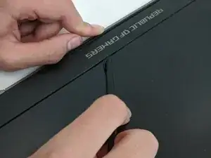 Используя инструмент для открытия, поднимите рамку после удаления клея.