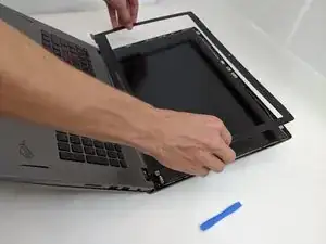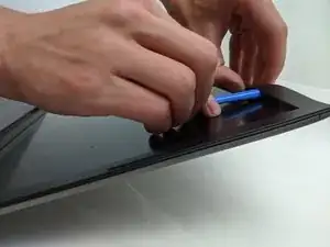 Разрежьте клей между рамкой и экраном с помощью нейлоновой лопатки, проходя по внутренней стороне рамки.