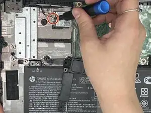 Используя отвёртку #0 Phillips, выкрутите винт 4 мм #0 Phillips, удерживающий Wi‑Fi‑модуль, и храните его в безопасном месте.