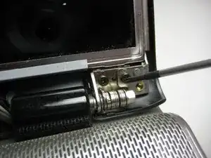 Снимите два винта (5.8 мм) с каждой стороны ЖК-экрана возле шарнира. Сначала снимите винты с самой внешней стороны.