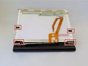Отверткой Phillips (размер PH001) снимите винты с опорных рычагов ЖК-экрана.