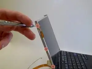 Отверткой Phillips удалите (6) винтов с крестообразным шлицем (размер PH001) длиной 3,0 мм (по 3 с каждой стороны) с боковой части крышки ЖК-экрана