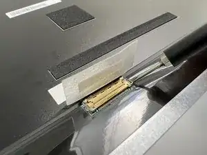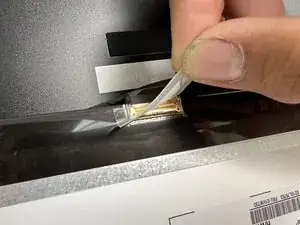 Отогните прозрачную ленту поверх разъёма кабеля дисплея.