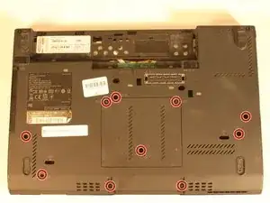 Переверните ноутбук так, чтобы сторона с батареей была вниз.