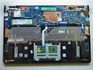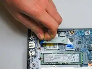 Отключите оба конца двух синих ZIF (разъёмы с нулевым усилием вставки) в верхнем левом углу, аккуратно перевернув чёрные защёлки на разъёмах и подтянув кабели вверх и от разъёмов.