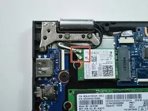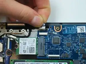 Отключите чёрный и белый кабели беспроводной LAN в верхнем левом углу, аккуратно потянув их вверх.