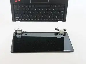 Снимите ЖК-панель, аккуратно отводя её от шарниров и поднимая вверх.