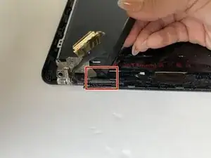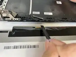 С помощью лопаточки приподнимите клейкую ленту, удерживающую кабель дисплея.