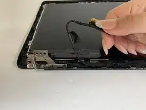 Медленно приподнимите панель и переложите её, чтобы открыть доступ к кабелю дисплея на тыльной стороне экрана.