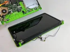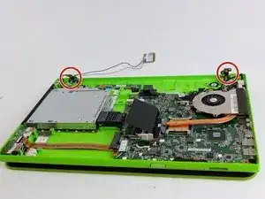 Экран удерживается двумя петлями. Обратите внимание на расположение винтов, чтобы затем правильно их установить и облегчить сборку.