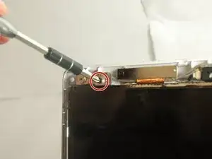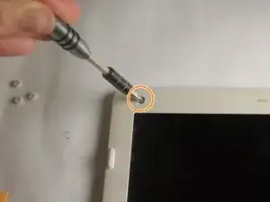 Удалите все четыре винта (длина: 7,7 мм) с помощью отвёртки Phillips #0. Держите экран при выкручивании винтов, чтобы он не упал.