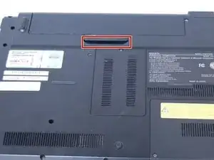 Подденьте аккумулятор ногтем или пластиковым инструментом. Поверните аккумулятор вверх и отведите, чтобы вынуть его из ноутбука.