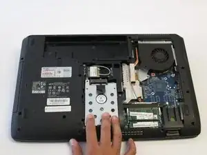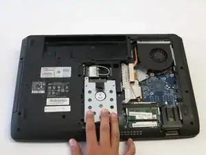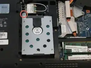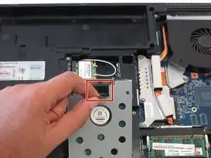 Используйте чёрную язычок, чтобы потянуть жёсткий диск вверх и вынуть его из ноутбука.