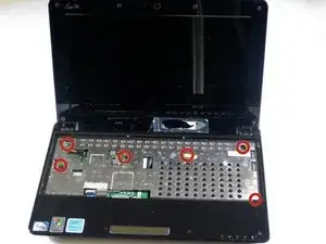 Снимите шесть винтов 5.5 мм с металлической пластины под клавиатурой.