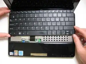 Не снимайте клавиатуру полностью. Это может повредить ленточный кабель, соединяющий нижнюю сторону клавиатуры с ноутбуком.