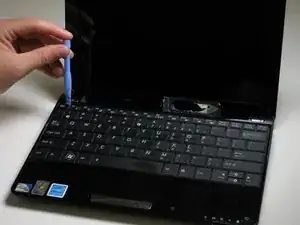 Используйте пластиковый инструмент для вскрытия, чтобы приподнять край клавиатуры, близкий к экрану.