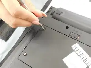 Удалите четыре винта с помощью отвертки Phillips #0, чтобы получить доступ к жёсткому диску.
