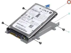 Снимите четыре винта, которые крепят держатель жёсткого диска к жёсткому диску.