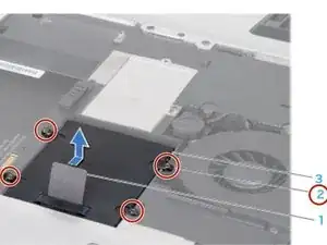 Если в вашем компьютере есть второй жёсткий диск (HDD1): 1. Ослабьте четыре установочных винта на втором жёстком диске (HDD1). 2. Используя язычок, извлеките второй жёсткий диск (HDD1) из отсека для диска.