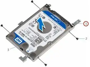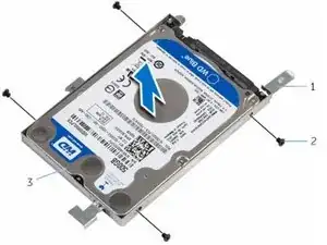 Удалите винты, которые крепят кронштейн жёсткого диска к жёсткому диску.
