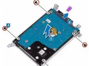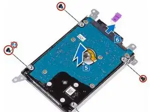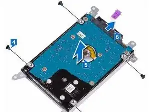 Снимите четыре винта (M3x3), которые крепят кронштейн жёсткого диска к узлу жёсткого диска.
