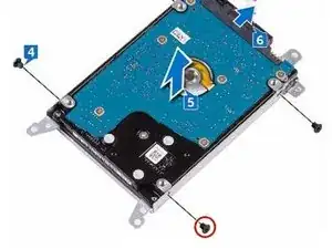 Установите четыре винта (M3x3), которые крепят кронштейн жёсткого диска к узлу жёсткого диска.