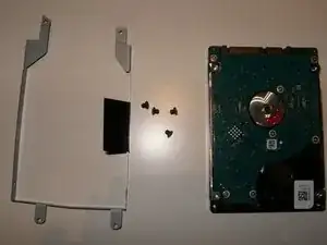 После снятия крышки жёсткий диск становится сразу видимым. Снимите четыре винта, удерживающих крепление жёсткого диска.
