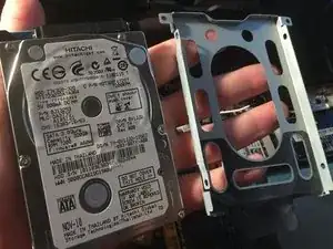 После удаления винтов жёсткий диск можно будет выдвинуть справа налево, отключив его от порта жёсткого диска.