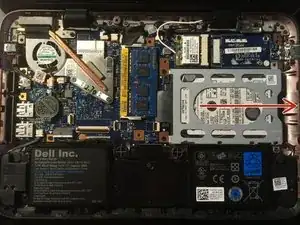 С открытым ноутбуком найдите жёсткий диск. Он будет расположён с левой стороны ноутбука, со стороны кнопки питания.