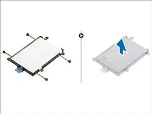 Удалите винты, крепящие жёсткий диск к кронштейну. Поднимите жёсткий диск с кронштейна.