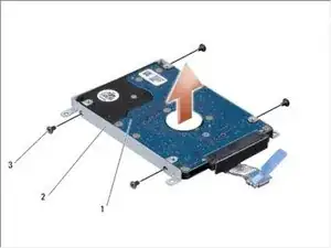 Удалите четыре винта, которые фиксируют кронштейн жёсткого диска к жёсткому диску, и снимите кронштейн.