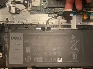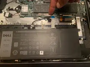 С помощью язычка отсоедините аккумулятор от системной платы. Снимите аккумулятор после его отключения от платы.
