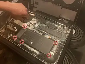 Отверткой Phillips #00 открутите пять винтов 3 мм, удерживающих аккумулятор.