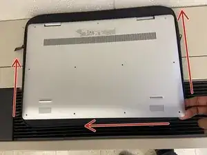 Не нужно приподнимать заднюю часть крышки, где винты закреплены на дне корпуса.