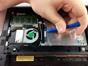 Используя пластиковый инструмент для открытия, сдвиньте жёсткий диск от его разъёма.